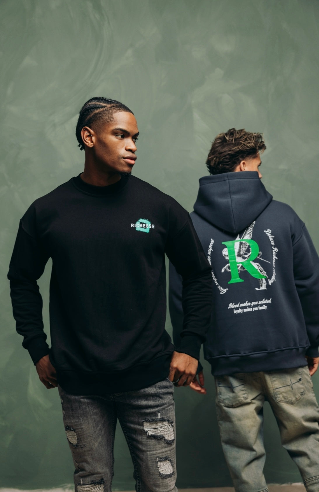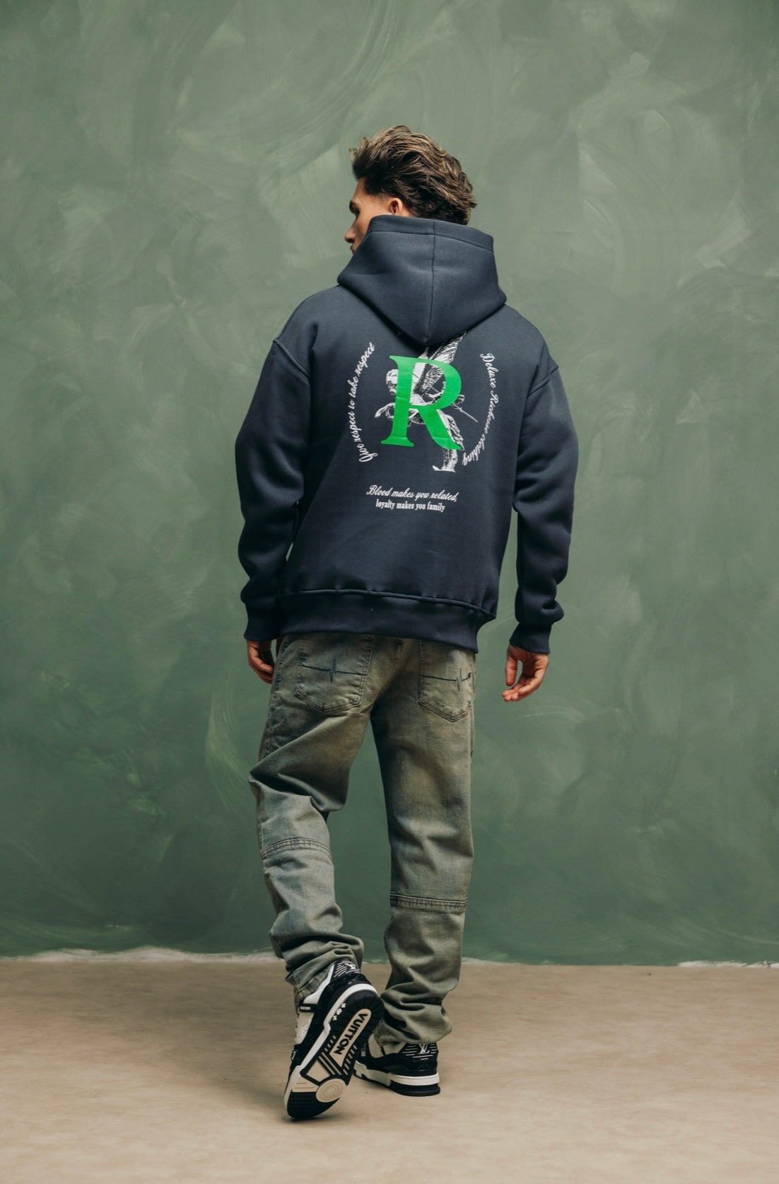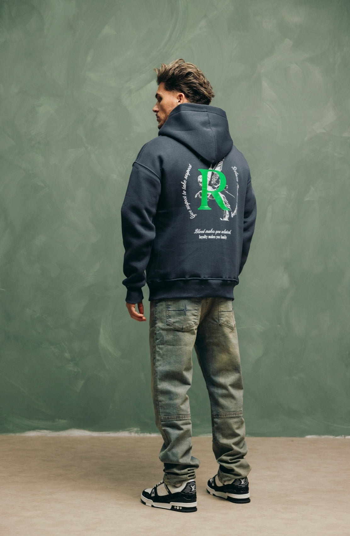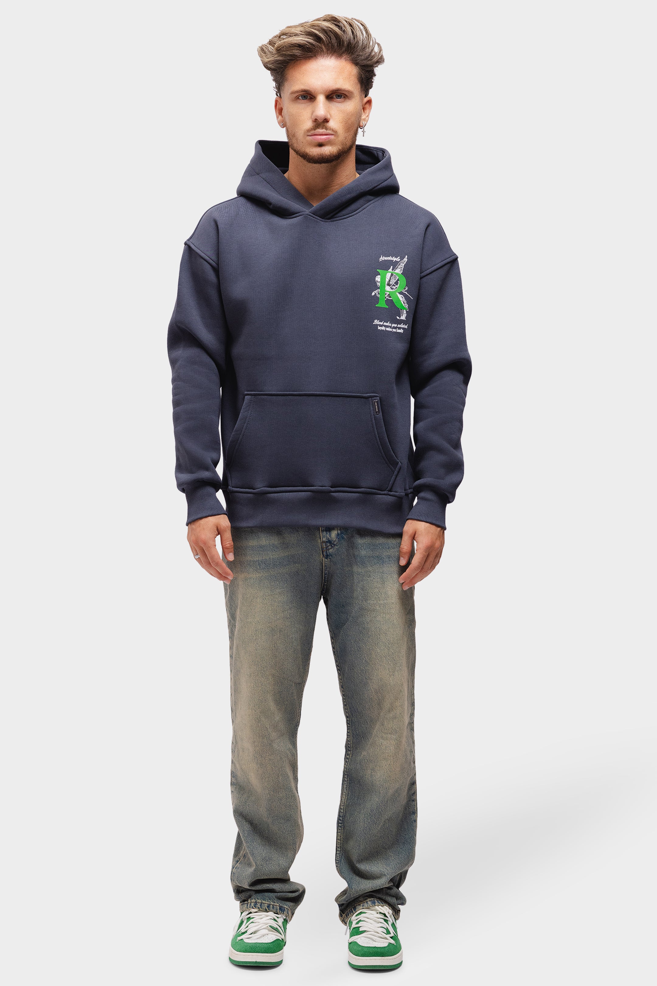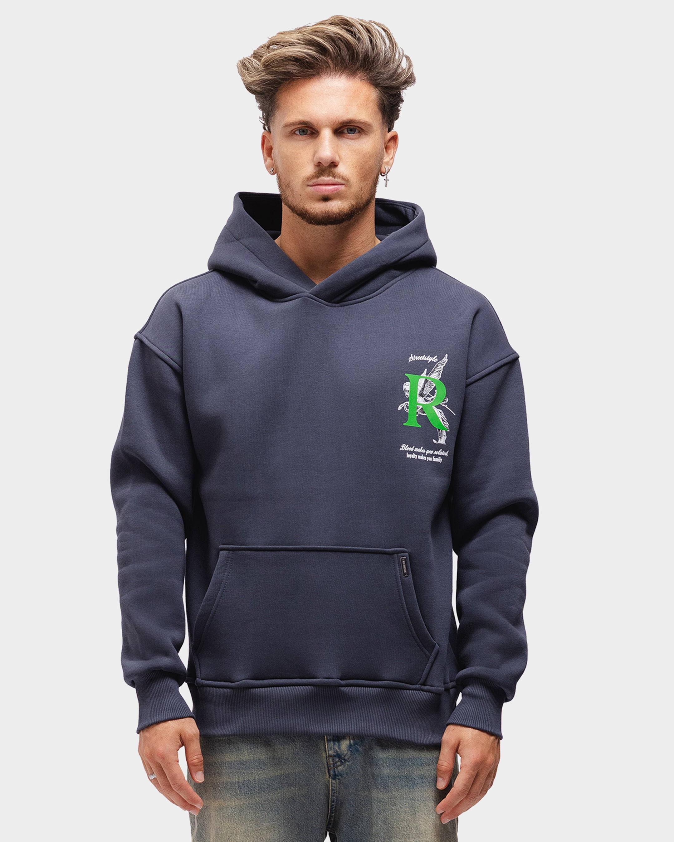 Unser Artemis-Hoodie besteht aus robuster Bio-Baumwolle. Der Hoodie hat eine geräumige Kapuze. Unser wiederkehrendes Richesse-Logo erscheint auf der Vorderseite. Auf der Rückseite finden Sie den charakteristischen Text „Blut macht Sie verwandt, Loyalität macht Sie zur Familie“.