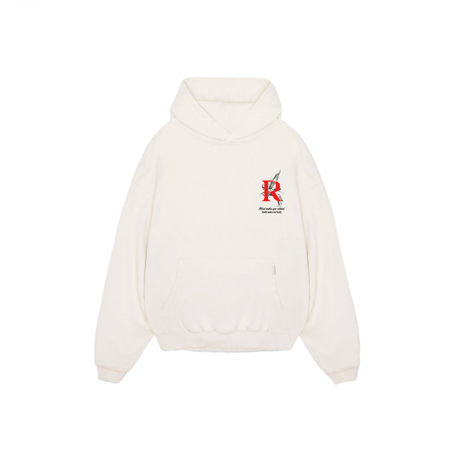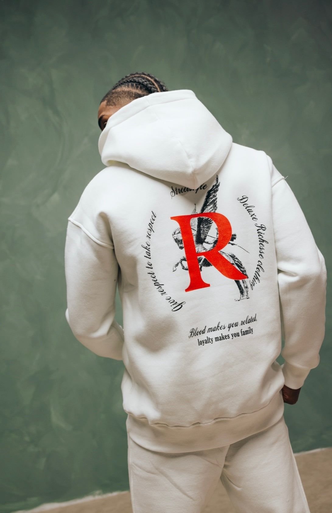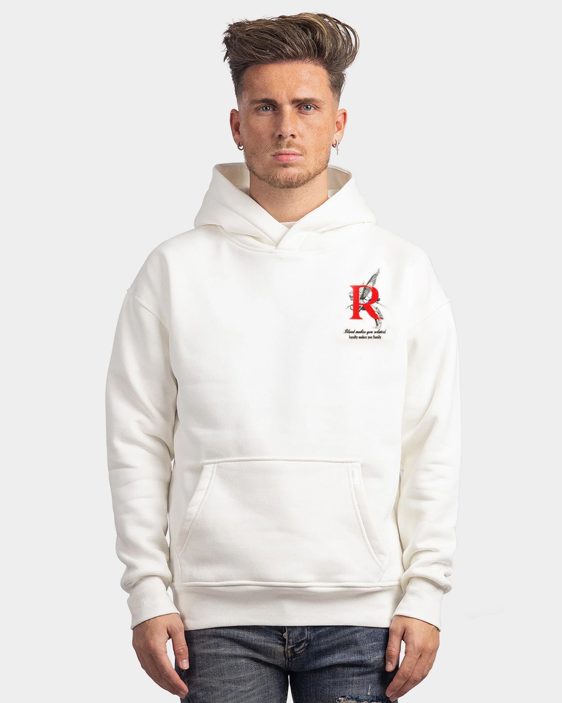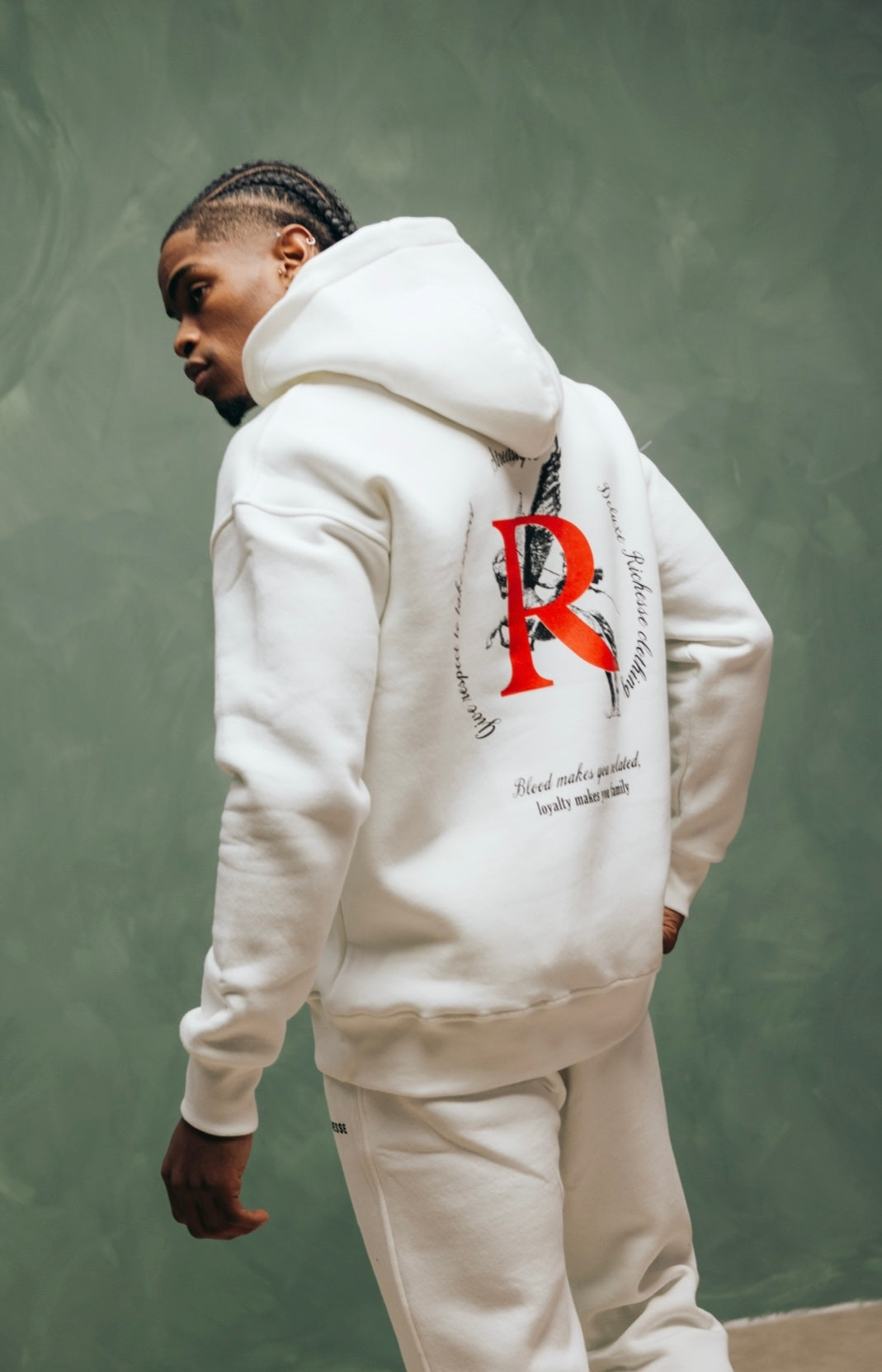 Our Artemis hoodie is made of sturdy Organic Cotton. The hoodie has a spacious hood. Our returning Richesse logo appears on the front. On the back you will find the characteristic text "Blood Makes You Related, Loyalty Makes you family".