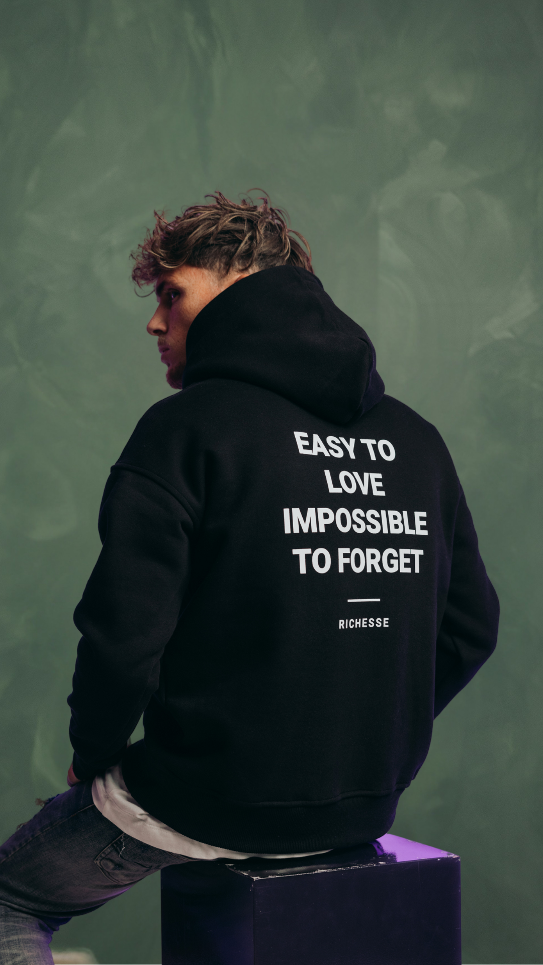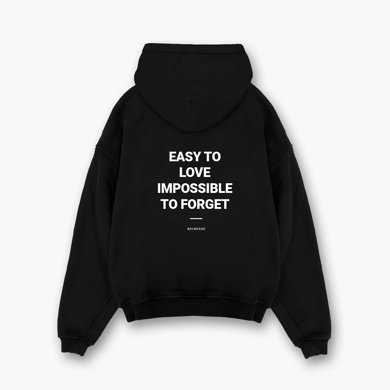 "Easy To Love Impossible To Forget" One of the unique models of the Richesse collection. Combine this item with cool jeans from Richesse and let the text on the back do the work.