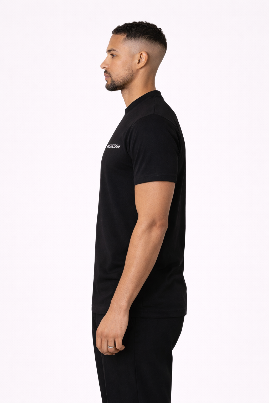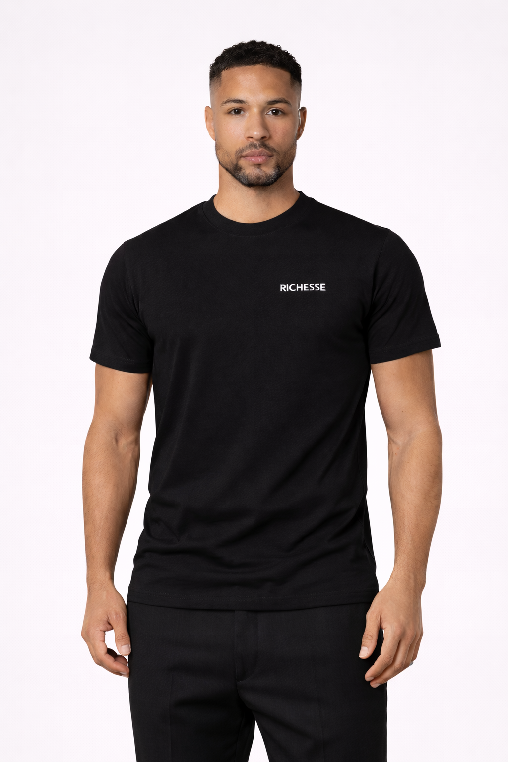 Un joli T-shirt basique de la nouvelle collection Richesse. Le T-shirt est de couleur noire et a une coupe régulière. Le T-shirt Richesse est facile à combiner avec un jean slim fit de Richesse.